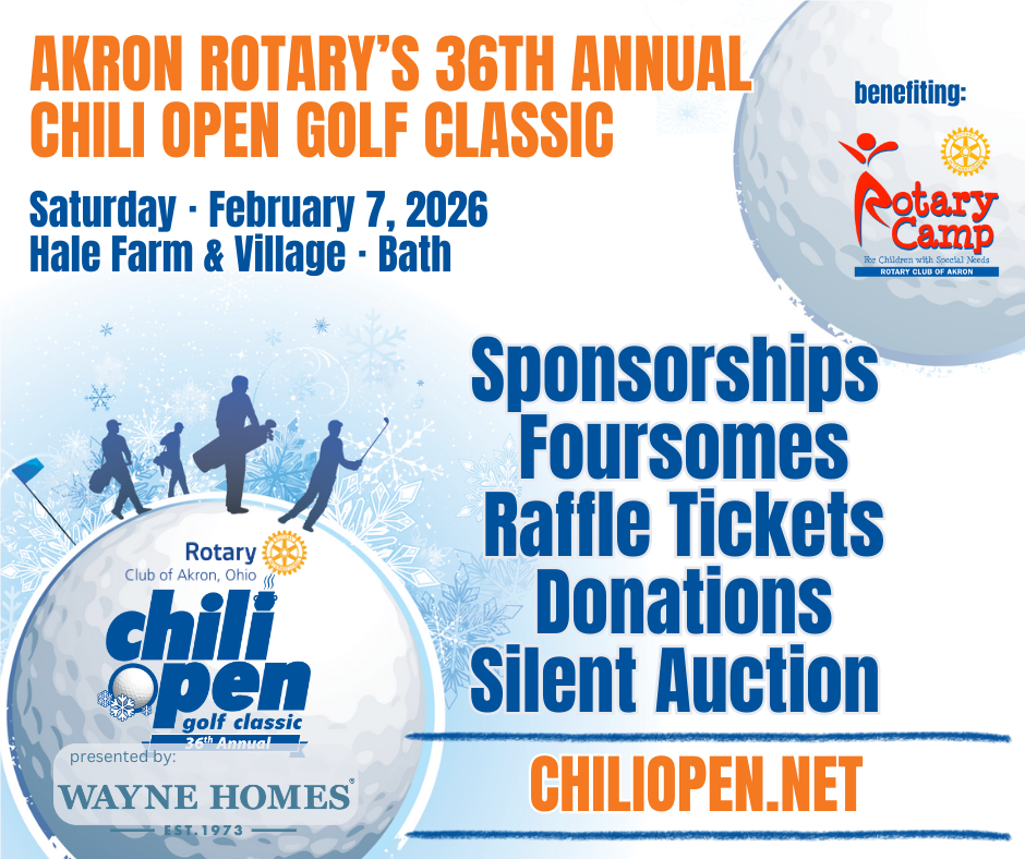 We appreciate your support in ensuring that this year's Chili Open remains a success for our Club, benefiting the campers at Akron Rotary Camp!
