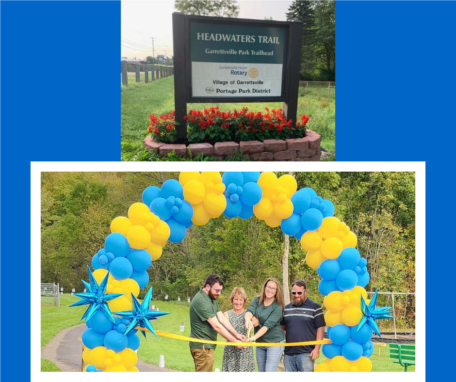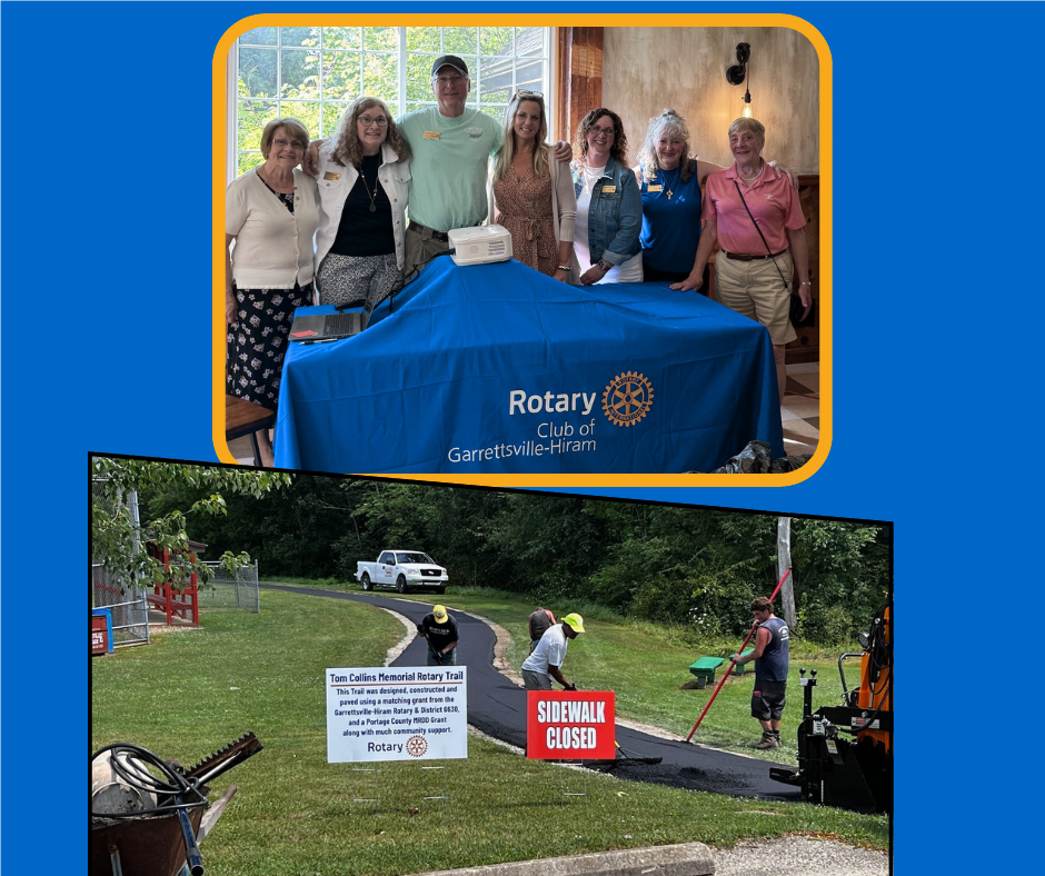 To celebrate their 100th anniversary, the Rotary Club of Garrettsville‑Hiram is installing a Story Walk along the Tom Collins Memorial Trail within Bill Phelps Park in Garrettsville. A Story Walk is a creative and enjoyable way for families to experience reading and nature at the same time. Laminated pages from children’s books are placed in aluminum frames along the path. There will be 21 displays spaced evenly along the trail. Portage County Library will change the featured book regularly and promote the project on social media. The club is donating the entire project—$6,735 and 80 hours of labor. Congratulations on turning this significant milestone into a gift for the community.