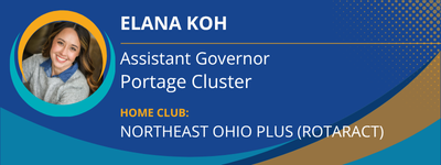 Elana Koh is a stay-at-home mom homeschooling three children and leading a local co-op in Twinsburg. With a professional background in marketing, event planning and tradeshow logistics, she's skilled at turning ideas into action. She also serves on an early childhood board, where she contributes her passion for education and child development. A founding member of Rotaract Club Northeast Ohio PLUS (July 2023), she served on the district public image committee, part of the 2022 class of leadership, and now co-presides over the club. Elana brings heart, purpose, and talent for building connections wherever she goes.