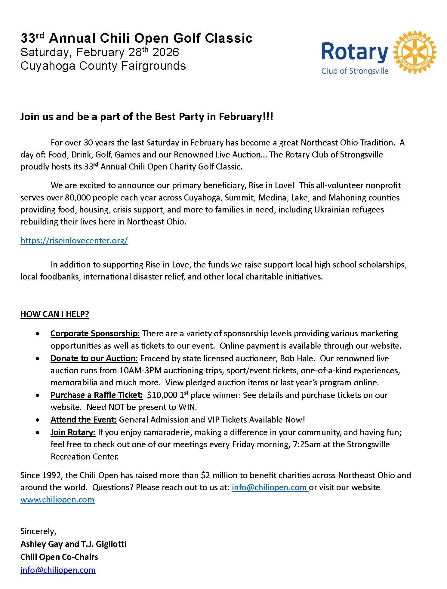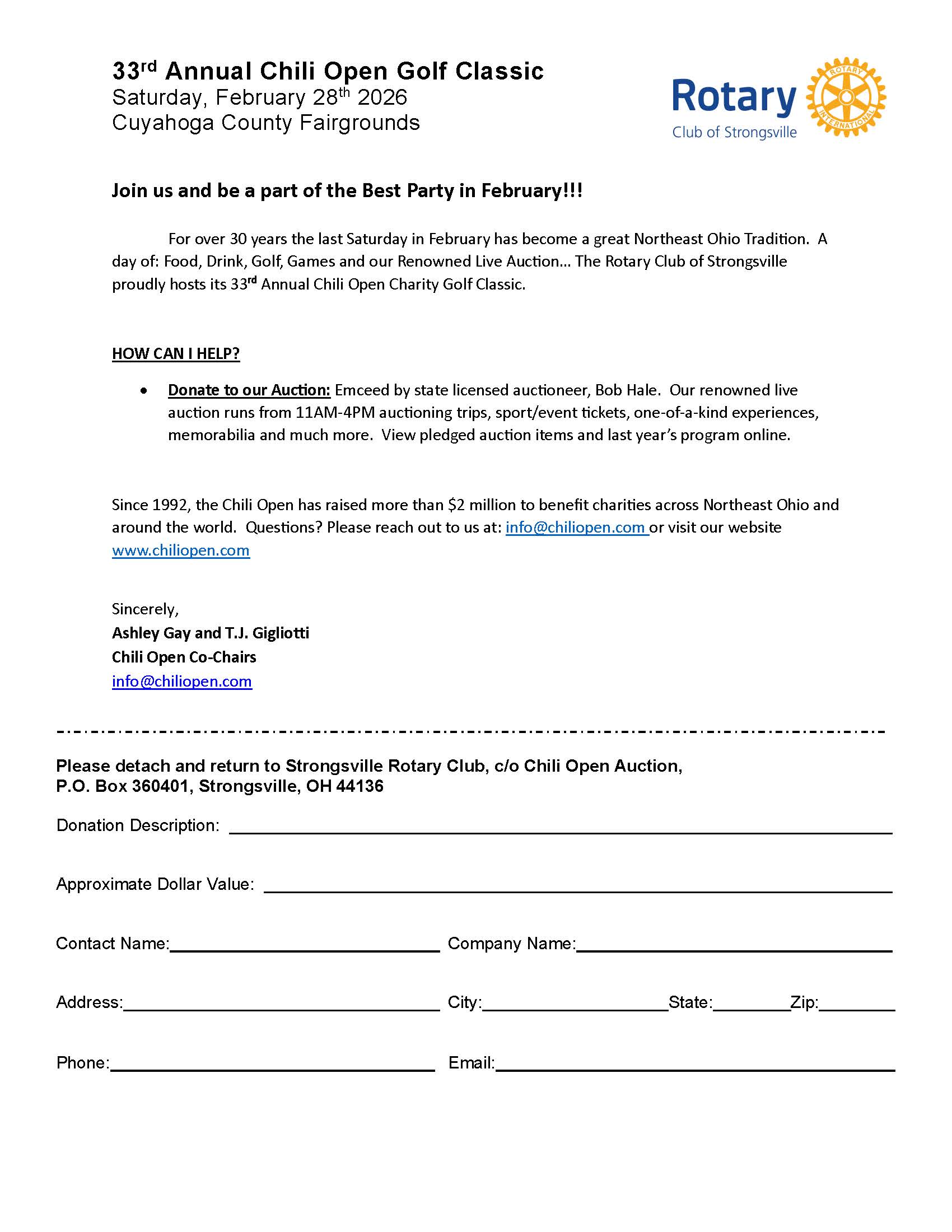 Please join us! See the article in the newsletter or go to our webpage rotarydistrict6630.org for more information and the order form. Any questions, call Stew Buchanon at 330-607-1442